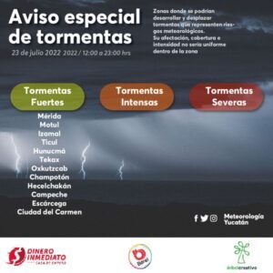 Un vórtice en niveles superiores de la troposfera en interacción con nuestra vaguada maya, favorecerá tormentas fuertes los estados de Yucatán y Campeche, así como moderadas en Quintana Roo.