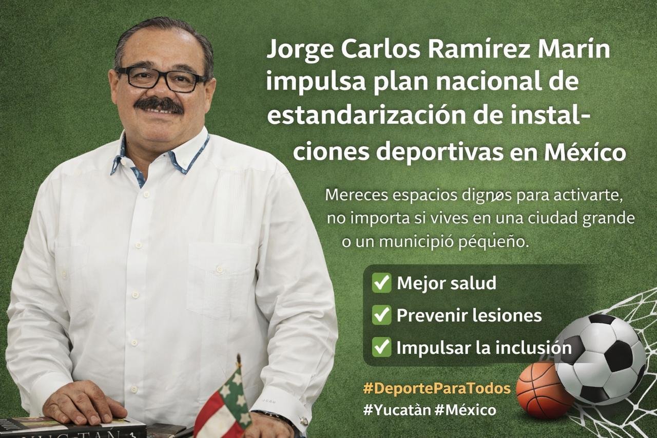 MÉRIDA, Yucatán.– El senador por Yucatán, Jorge Carlos Ramírez Marín, presentó una iniciativa para crear el Plan Nacional de Estandarización de Instalaciones Deportivas, con el objetivo de garantizar que todos los mexicanos cuenten con espacios adecuados, seguros y de calidad para la práctica del deporte.