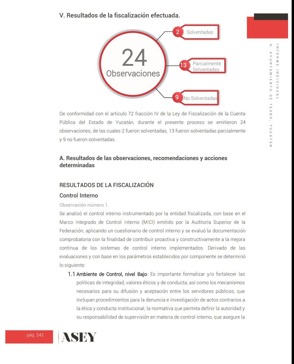 Regresando al tema de la auditoría, durante el proceso se emitieron 24 observaciones, de las cuales 2 fueron solventadas, 13 fueron solventadas parcialmente y 9 no fueron solventadas.