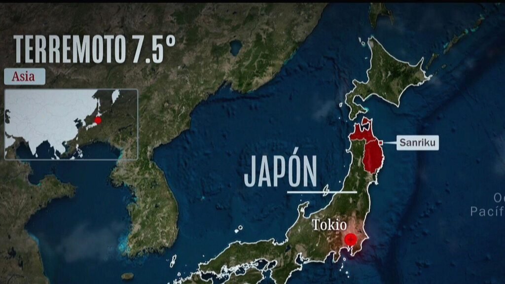 Un fuerte terremoto de magnitud 7.5 se registró este lunes frente a la costa noreste de Japón, generando alertas de tsunami y provocando la movilización de autoridades y servicios de emergencia, sin que hasta el momento se reporten víctimas ni daños graves.