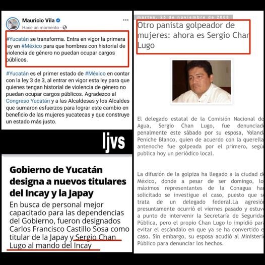 Atole con el dedo desde la calle 61 x 60, por un lado el gobernador Mauricio Vila Dosal presume que Yucatán es el primer estado con una ley que prohíbe que funcionarios con historial de violencia de género ocupen cargos públicos y por otro lado premia a Sergio Chan Lugo, que tiene un conocido pasado de violencia de género, con un puesto de mayor importancia al que tenía, ahora pasa de la JAPAY al INCAY.